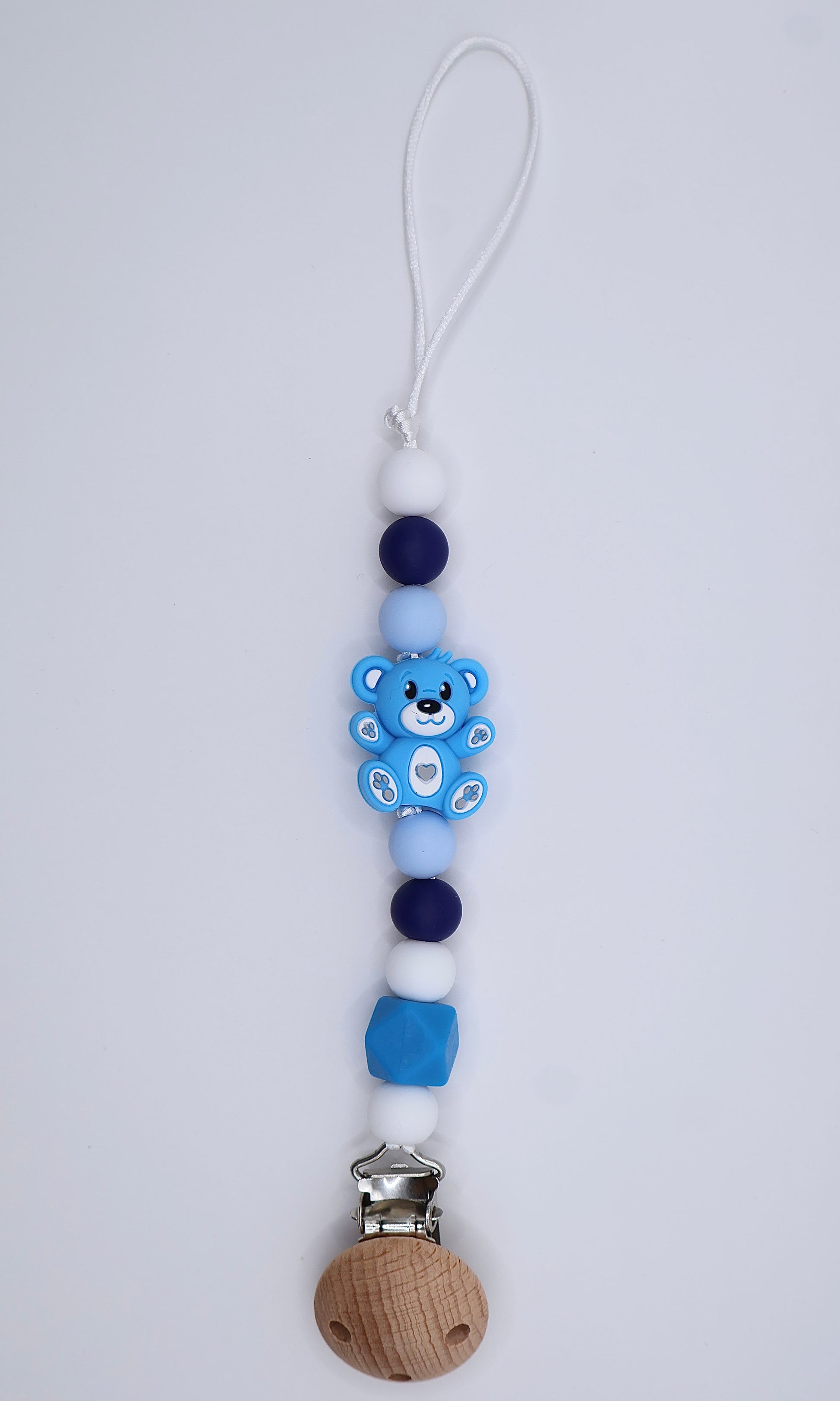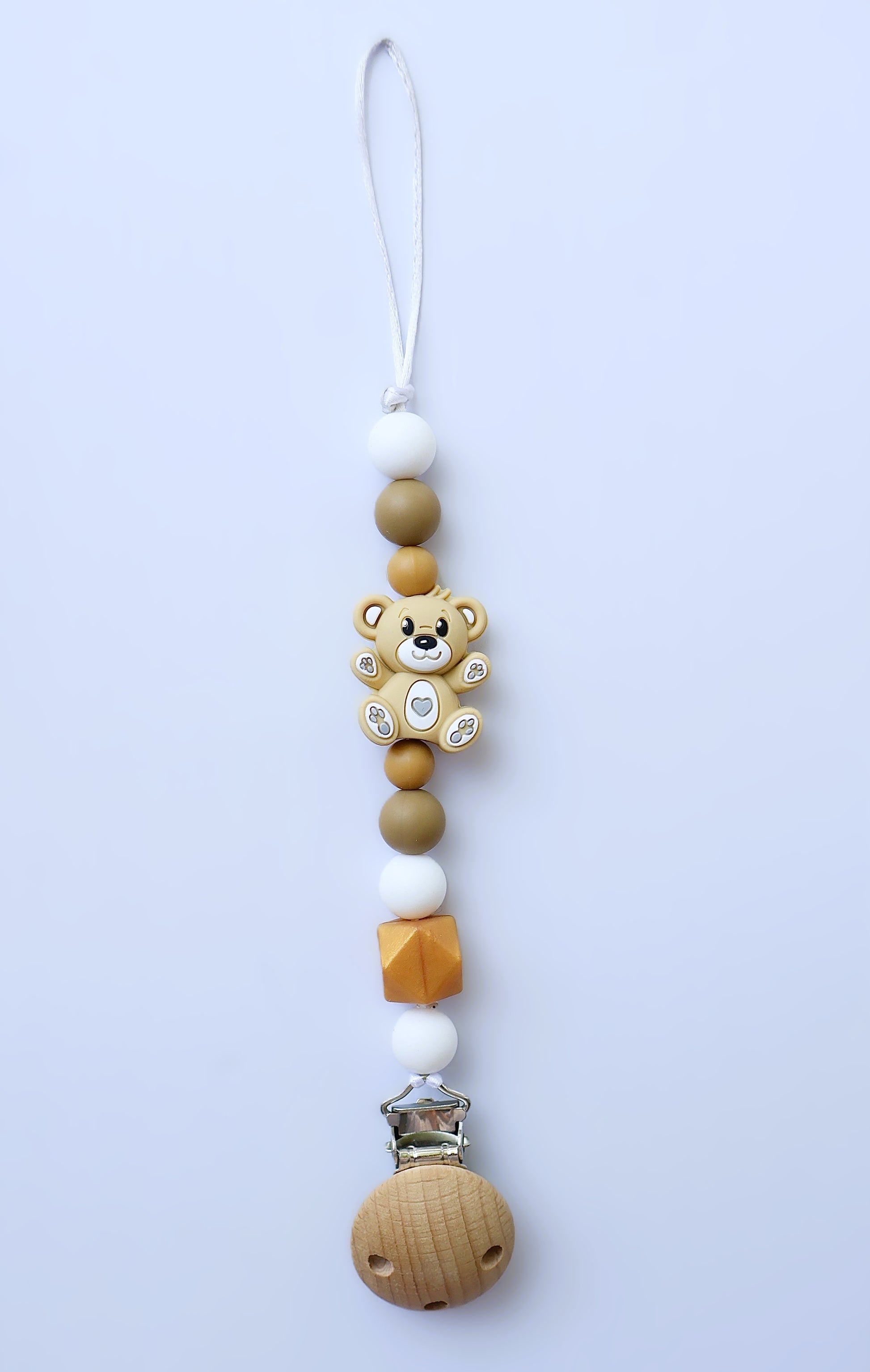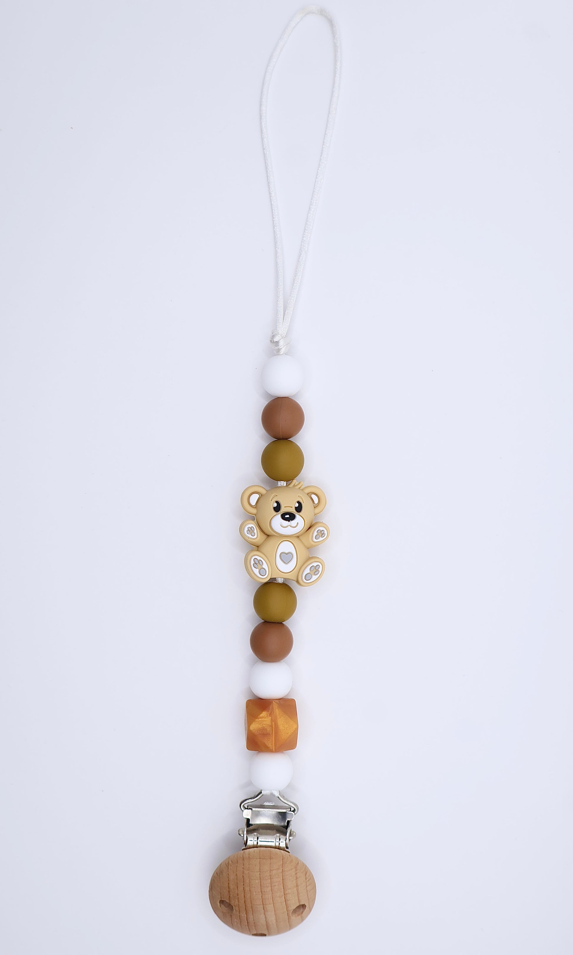 Each clip combines premium food-grade silicone beads and natural beech wood accents, making it the perfect blend of function and aesthetic. It gently secures your baby’s pacifier while offering a soothing, textured surface for curious little hands and teething gums.